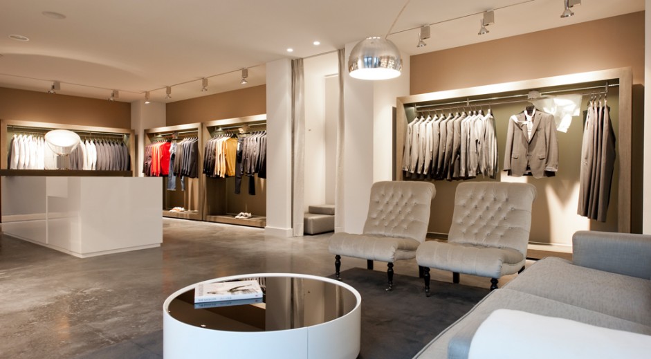 Strakke lijnen en warme kleuren. Hoogglans en natuurlijke materialen. Spannende combinaties die niet alleen pure luxe maar ook passie uitstralen. Robuust meubilair dat volledig in dienst staat van de kledingcollectie. Ruimtes die verleiden en inspireren en intieme hoeken waar privacy juist de ruimte krijgt.